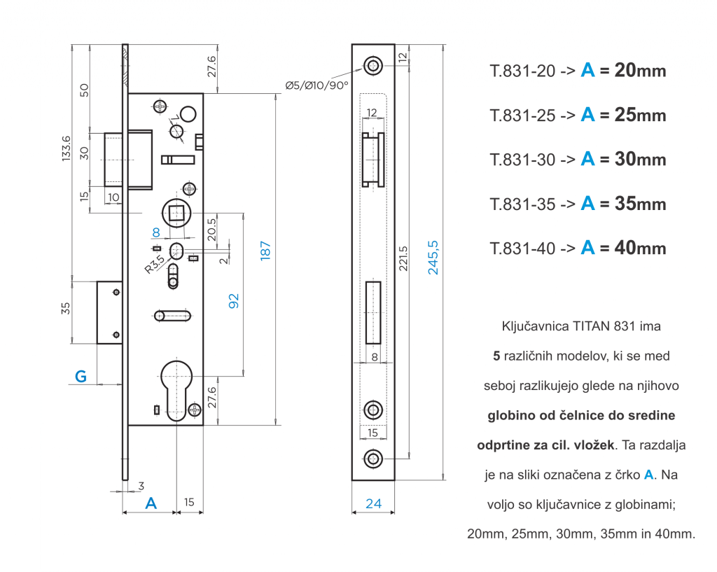 KLJUČAVNICA ZA KOVINSKA VRATA NA ZOBEK TITAN 831