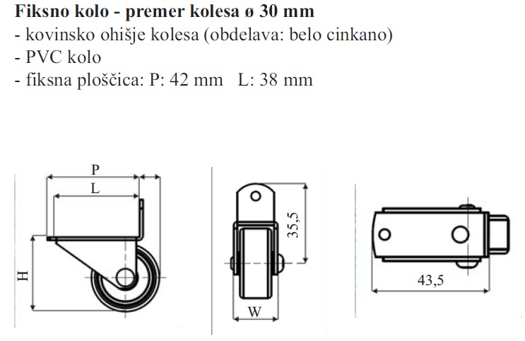 POHIŠTVENO KOLO FI 30 FIKSNO KOTNO109