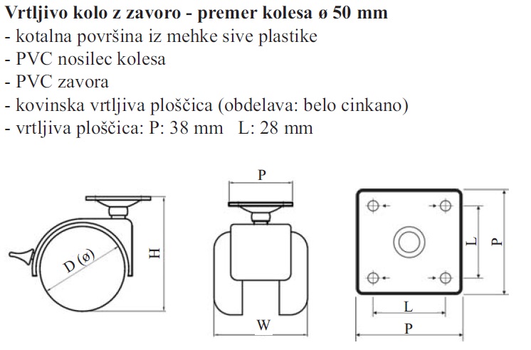 POHIŠTVENO KOLO FI 50 MEHKO Z ZAVORO