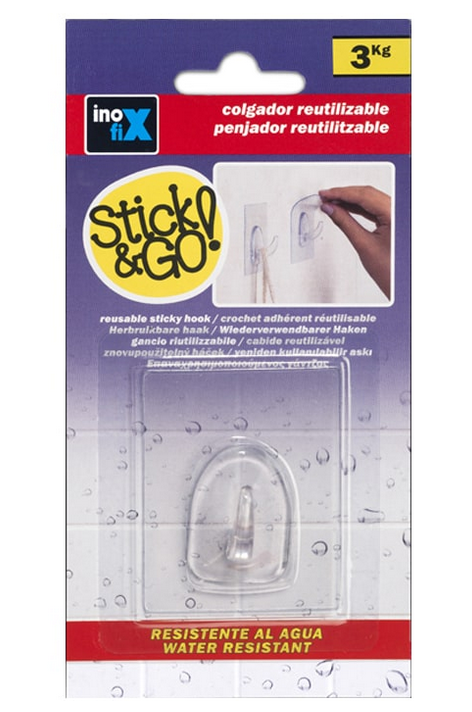 Obešalnik prilepi in uporabi in ga je možno poljubno premikati. Površine morajo biti gladke in razmaščene. Uporabi se lahko na ploščicah, steklo, ogledalu ali na gladkem lesu.