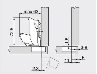 ravna, polkriva, ravna z mehkim zapiranjem, ravna brez vzmeti, montažna ploščica z excentrom
