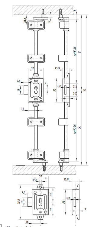 Ključavnica ima priložen pribor, razen palice se naročajo dodatno.