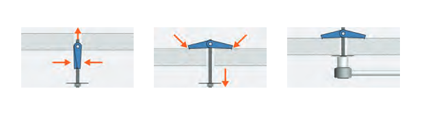 – ko vložek pride skozi ploščo (strop, steno …) vzmet razpne roki